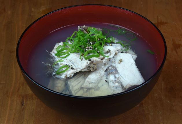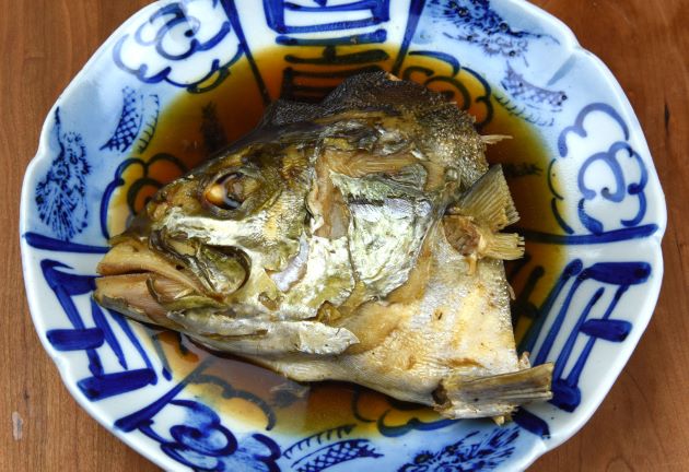 ![クリックで拡大表示]() アイブリの兜煮(煮つけ) 大型のアイブリの兜を梨子割りにする。これを湯通しして、氷水(冷水)に落として残った鱗やぬめりを流す。水分をよく拭き取り、酒・砂糖・しょうゆ味で煮る。砂糖、みりんを使うとご飯のおかずにいい。煮ることで適度にしまり、身自体の甘みとしょうゆや酒のうま味が相まって絶品きわまりなし。最後には必ず骨湯(医者殺し)に。クリックで閉じます アイブリの兜煮(煮つけ) 大型のアイブリの兜を梨子割りにする。これを湯通しして、氷水(冷水)に落として残った鱗やぬめりを流す。水分をよく拭き取り、酒・砂糖・しょうゆ味で煮る。砂糖、みりんを使うとご飯のおかずにいい。煮ることで適度にしまり、身自体の甘みとしょうゆや酒のうま味が相まって絶品きわまりなし。最後には必ず骨湯(医者殺し)に。クリックで閉じます![]()