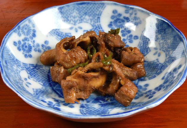 ![クリックで拡大表示]() アイブリの胃袋の炒り煮 胃袋は開いてていねいに洗い、一度軽く湯がく。これを冷水に落として徹底的にぬめりや残った異物を取り去る。水分をよく切り、適宜に切って置く。鍋にみりん・酒・少量の砂糖・しょうゆを煮立てて、胃袋を入れてささーっとからめるように煮つける。独特の食感が楽しめ、噛めば噛むほどうま味が染み出してくる。クリックで閉じます アイブリの胃袋の炒り煮 胃袋は開いてていねいに洗い、一度軽く湯がく。これを冷水に落として徹底的にぬめりや残った異物を取り去る。水分をよく切り、適宜に切って置く。鍋にみりん・酒・少量の砂糖・しょうゆを煮立てて、胃袋を入れてささーっとからめるように煮つける。独特の食感が楽しめ、噛めば噛むほどうま味が染み出してくる。クリックで閉じます![]()