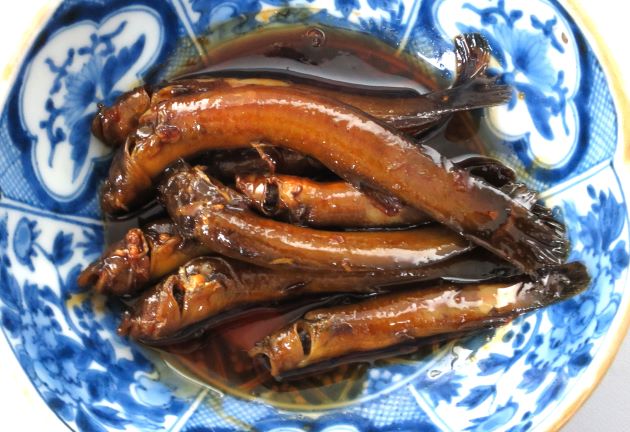 甘露煮 みりん、酒、砂糖などを使い、しょうゆは少量で煮たもの。[福井県奥越地方]