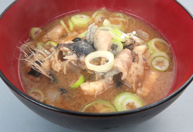 アカドンコのみそ汁 内臓と鰓を取り去る。肝と卵巣、胃袋は残して置く。身は鱗がないので適宜に切る。湯通しして冷水に落として表面のぬめりを流す。水分をよくきっておく。肝、胃袋も切り昆布だしで煮だしてみそをとく。よく煮込むほど味が良くなる。クリックで閉じます![]()