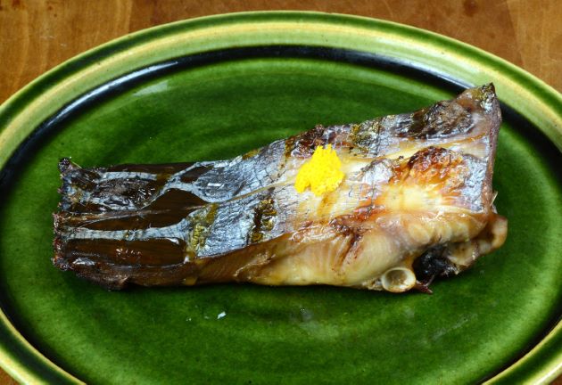 アカナマダの塩焼き 水洗いして二枚に下ろして骨つきの方を切り身にする。1時間以上寝かせてじっくりと焼き上げる。焼くと皮目がタチウオにも似た香りがする。鰭筋(縁側)は脂で膨らんで濃厚な味わい。身は脂があって柔らかく身離れがよく美味。クリックで閉じます![]()