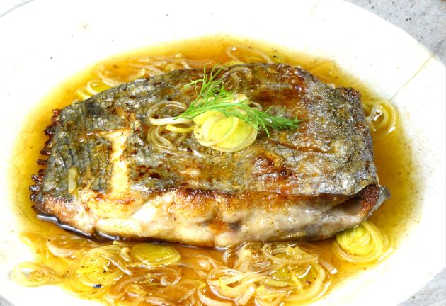アカナマダの兜煮(煮つけ) 頭部を使い煮つけにしてみた。平たいので半割にしなくても煮つけられる。湯通しして表面のぬめりと汚れを流す。水分をよくきり水・醤油・酒・砂糖を合わせて煮立てた中で煮る。思った以上に食べ出があり、目とそのまわりがうまい。クリックで閉じます![]()