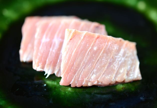 赤みのある全体に柔らかい身質で、背鰭下は赤褐色。身質はとてもよく、あえていえばメカジキ、アカマンボウに近く酸味が少なく、適度に繊維質。熱を通しても硬くならない。栄養