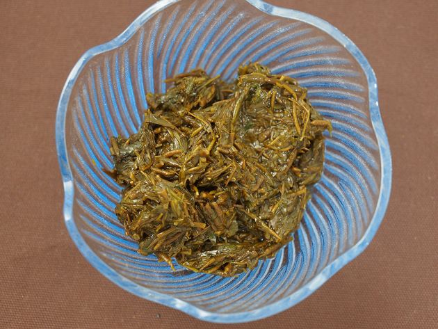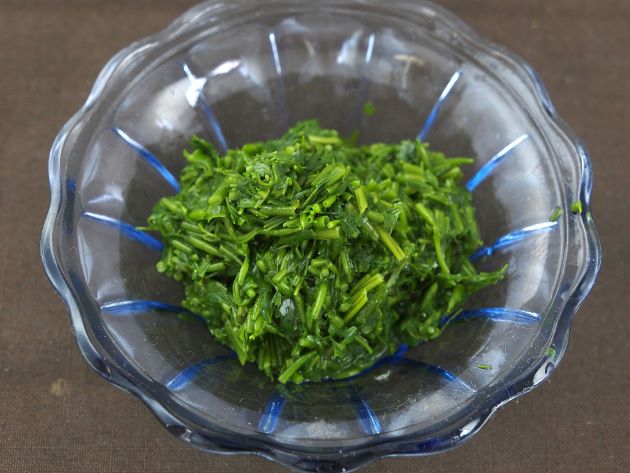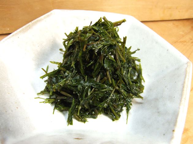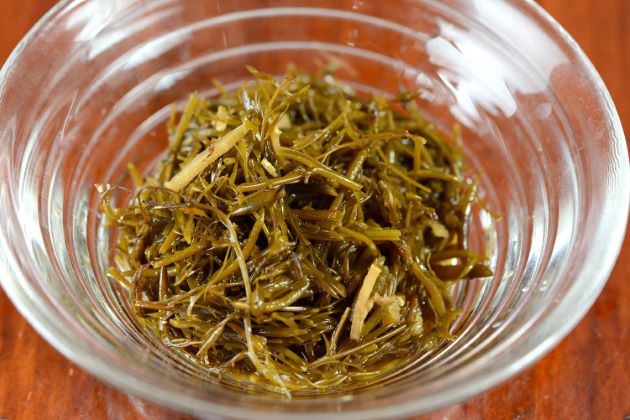 湯通しして刻むとしゃきしゃきとした歯触りがあり