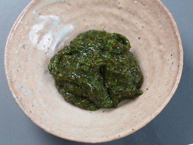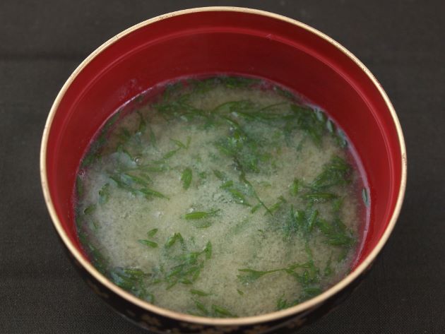 アカモクのみそ汁 藻体をていねいに洗う。甲殻類アレルギーがある場合には、ワレカラなどをていねいに洗い流す。甲殻類が着いていることがあるのでアレルギーのある方は要注意。これを細かく叩いてカツオ節だし、煮干しだしなどに入れてみそを溶く。簡単にできてとても味のいいみそ汁になる。クリックで閉じます![]()