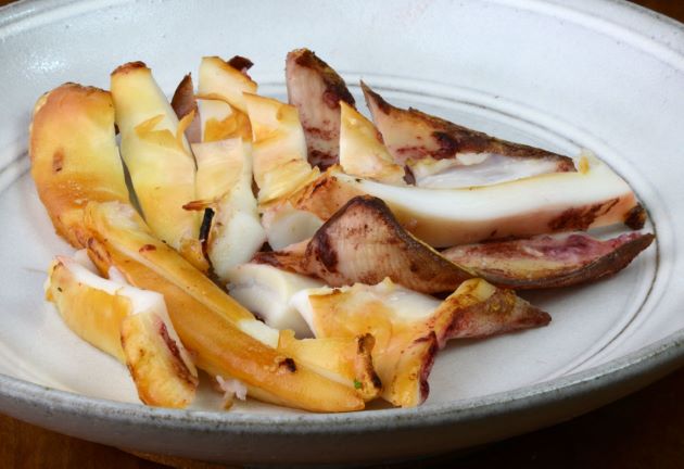 アブライカの湯引き造 皮が剥きにくいのが難点だが、身(筋肉)の味はとてもいい。これを湯引くことで解消する。クリックで閉じます![]()