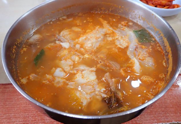 どろっとしてうまいなかに、キムチの酸味、唐辛子の辛味が生きている。ご飯をスープに放り込んで食べていた人が多かったが、それこそが正解かも。ご飯にかけて食べてもいい。関連コラム(郷土料理)