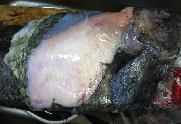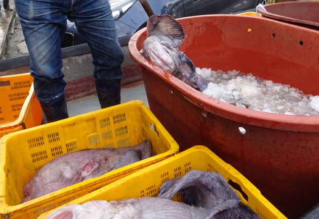 80㎝ SL 前後、重さ10kgを超える。背鰭などに砂利を思わせるつぶつぶがあり、体表の黒い皮膜はとれやすい。