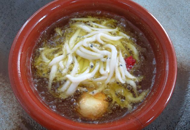 イシカワシラウオのアヒージョ(白魚のアヒージョ) ざっと水洗いして水分をよくきる。容器(陶器製のカスエラである必要はない)にニンニク・鷹の爪・オリーブオイル・シラウオを入れて火を通す。シラウオを食べるだけではなくうま味の出たオリーブオイルを楽しむものだ。朝ご飯に作るとパンに合う。クリックで閉じます![]()
