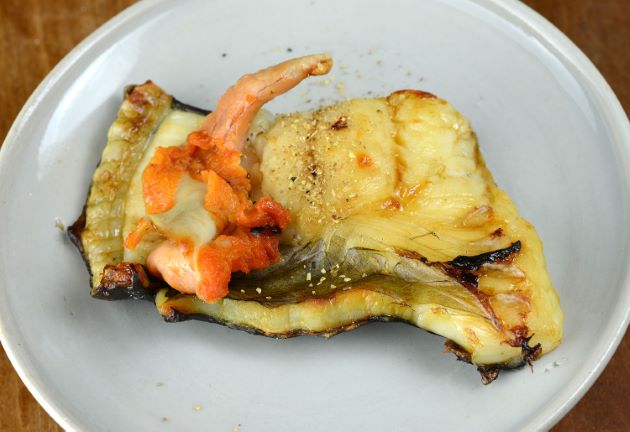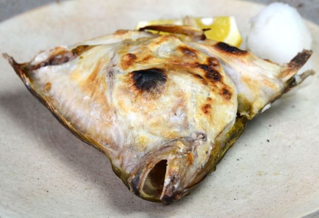 水洗いして頭部を大きめに切り取る。塩をまぶして1時間以上置く。表面に出て来た水分を拭き取り、じっくり焼き上げる。
