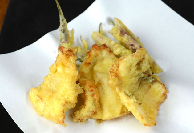 イシガレイの天ぷら 皮なしで揚げたものだが、意外にも独特の風味がある。天種として優秀である。揚げたてはふんわりして甘みがある。クリックで閉じます![]()