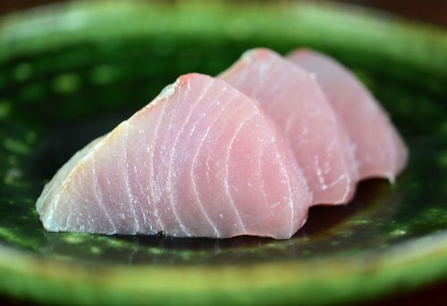 筋肉はあまり赤くなく、サワラやハガツオに似た色合いである。当然、マグロ類のような酸味はほとんどない。