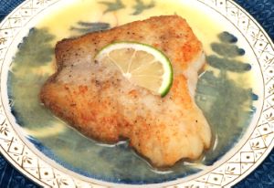 イタチウオのムニエル クセのない上品な味わいで、やや水分が多い白身はムニエルにも最適である。油とバターでうま味を足し算して、しかも内部の水分はそのまま豊潤なままである。バターの豊かな香りとうま味と相まってとてもうまいムニエルとなる。クリックで閉じます![]()