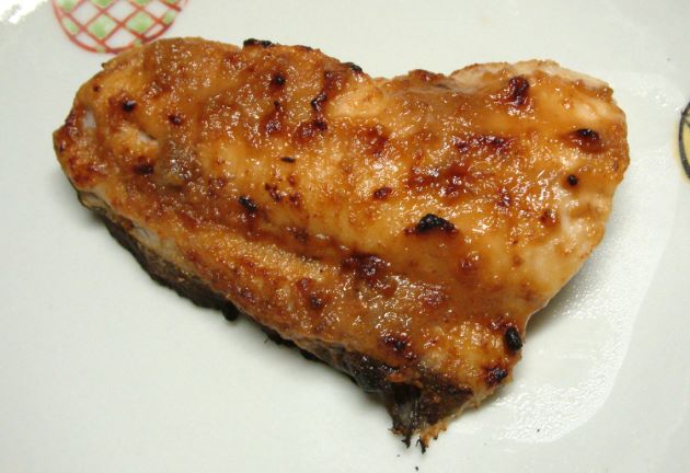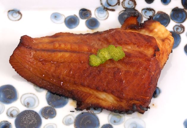 イタチウオのイタチウオの幽庵焼き 単に塩焼きにすると焼き上がりが悪く、身はぼろっとしていやなほぐれ方をする。これは水分が多いためである。この水分をしょうゆと酒やみりんに入れ替えてしまうのが幽庵焼きである。焼くと表面は香ばしく、中はしっとりとしてとても味わい深い。クリックで閉じます![]()