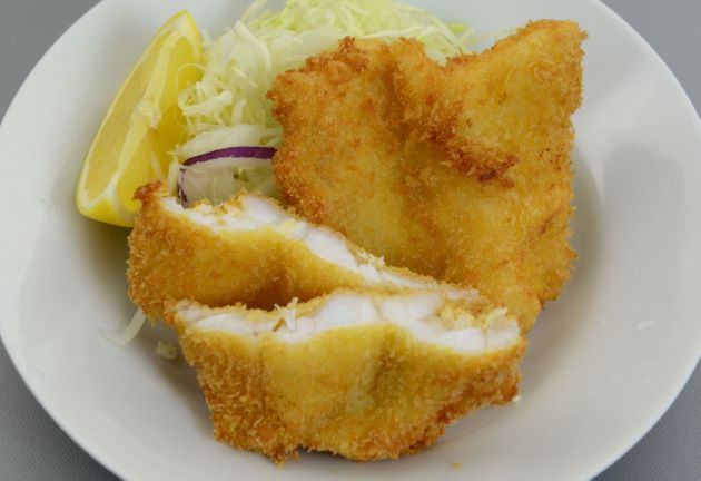 イタチウオのフライ やや水分が多いもののクセもなく、上品な味わいの白身である。これはマダラやスケトウダラなどに似ている。ヨーロッパなどではこのタラ類のフライを好んで作るのだが、確かにこのような白身で作るフライは絶品なのである。タラ類に匹敵するうまいフライになる。クリックで閉じます![]()