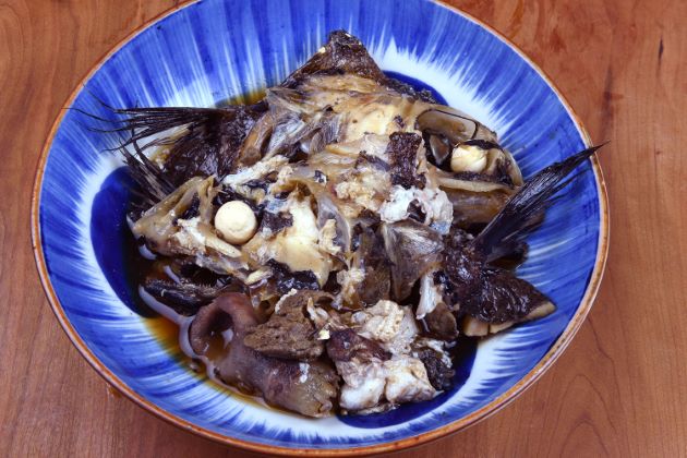 イバラヒゲのあら煮 頭部、かまの部分、胃袋、肝などを集めて置く。湯通しして冷水に落としてぬめりや残った鱗を流す。鍋に入れてひたひたの水を入れて火をつける。沸いてきたらアクを引き、酒を加える。少し煮て砂糖(みりん)などの甘味を加える。その後、しょうゆを2〜3回に分けて加える。味つけはお好みで。ゴボウや白ねぎ、大根などを一緒に煮てもうまい。クリックで閉じます![]()
