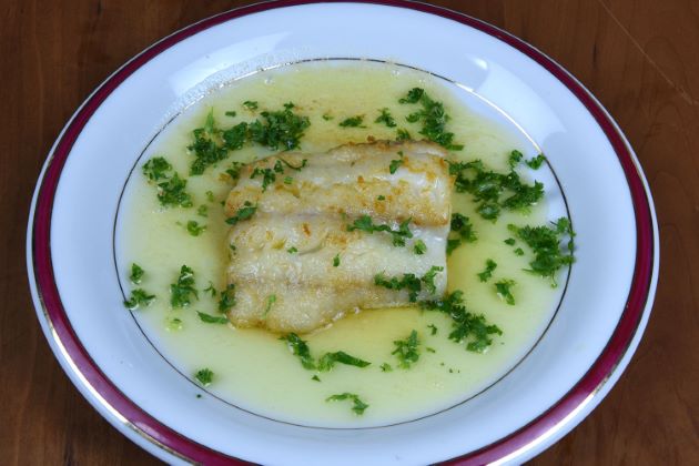 イバラヒゲのムニエル 三枚に下ろして腹骨をすき、血合い骨を抜く。水分をていねいに拭き取り、塩コショウして小麦粉をまぶして、多めの油でじっくりとソテーする。仕上げにバターで風味づけ、香りのあるパセリなどを振る。ソテーしても柔らかく、層にそってほぐれる身に甘みがある。