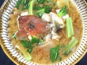 イラのみそ汁 ベラ科のなかでは水分が少なく煮崩れすることもなく、実にうまいだしが出る。大型のものはあらを、小振りのものは水洗いしてぶつ切りにする。これを湯通しして冷水に落として残った鱗やぬめりを流す。この行程をすると悪が出にくく、きれいに仕上がるが省いてもいい。水(昆布だしでも、差し昆布をしてもいい)で煮だしてみそを溶く。ご飯に合う。クリックで閉じます![]()