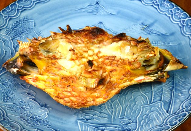 イラのみりん焼き とても味のいい皮目を生かすために、振り塩をして半日以上寝かせて、みりんに1時間程度漬け込み。みりんをつけながら焼き上げたもの。酒を使っても美味。皮目のうま味とみりんが相乗効果を生み、身は適度に繊維質で舌に滑らかである。クリックで閉じます![]()