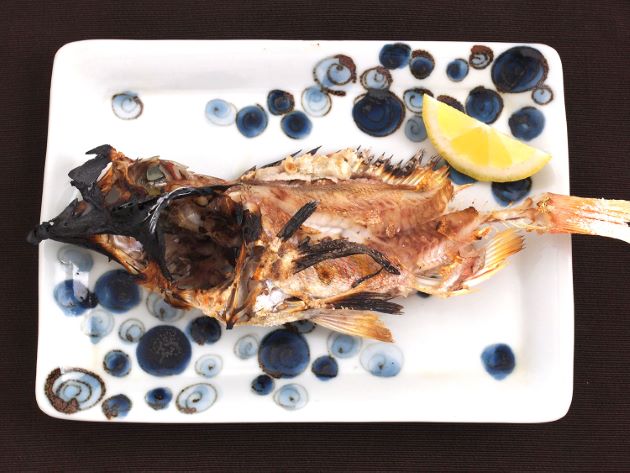 ウケグチメバルの煮つけ メバル属の定番料理は煮つけである。液体をかいした料理と言ってもいい。また三枚に下ろすなどすると著しく歩留まりが悪いので丸ごと料理すべきだともいえそうだ。水洗いして湯通しして冷水に落として残った鱗やぬめりを流す。これを酒・砂糖・しょうゆ味で煮る。酒・しょうゆ、酒・みりん・しょうゆ味でもいい。煮ても軟らかく皮と身にも味があり、非常においしい。