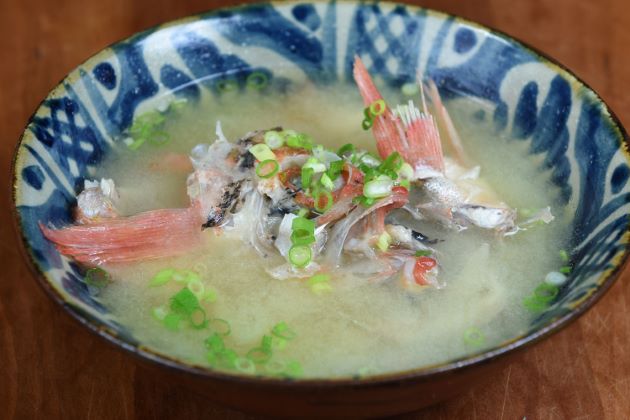 ウケグチメバルのみそ汁 丸ごと1尾つかっても刺身などにしてときのあらを使ってもいい。水洗いして適当に切り、湯通しする。冷水に落として残った鱗やぬめりを流す。水分をよくきり、水から煮出してみそを溶く。うま味豊かな汁になり、身と皮に味がある。クリックで閉じます![]()
