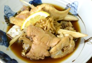 ウスバハギの煮つけ 水洗いして、適当に切る。肝はていねいに取り出して置く。身は湯通しして冷水に落とし、粗熱をとり、水分をよくきる。これを酒・みりん・しょうゆ・水で煮る。臭い消しはしょうがを数片一緒に煮る。仕上げに柚子を絞り込んでもいい。クリックで閉じます![]()