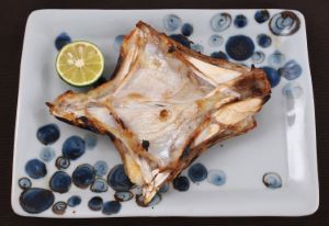 ウスバハギの焼き切り 水洗いして肝を取り分けておく。肝は身と一緒にあぶってもいいが、ゆどうして添えてもいい。三枚に下ろした身は血合い骨・腹骨を取り、薄皮をあぶって冷水に落とす。水分をよく切り、刺身状に切る。肝を溶いたしょう油で食べる。クリックで閉じます![]()