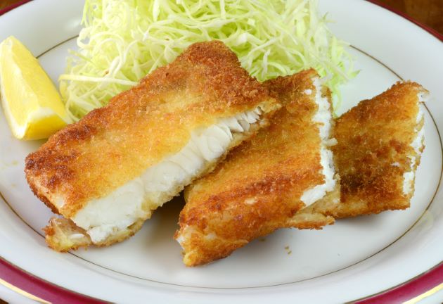 ウスバハギのフライ 水洗いして三枚に下ろす。腹骨・血合い骨を取り、塩コショウする。ここではタイムで香りづけしている。小麦粉をまぶし、バッター液(卵・小麦粉・水を合わせる)をからめ、パン粉をつけて揚げる。非常に緻密な身に肉汁が隠れていて豊潤、かつ美味。クリックで閉じます![]()