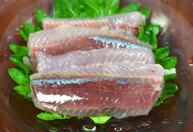 ウルメイワシの刺身 イワシ類のなかでももっともうま味が強いので刺身にすると絶品である。特に小型でも味がいいのがありがたい。