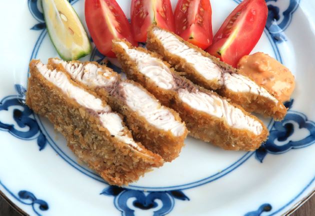 皮を引いて塩コショウして小麦粉をまぶして、卵黄(卵黄、小麦粉、少量の油、水で衣を作ってもいい)をくぐらせパン粉をつけて揚げる。