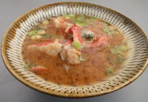 エビスダイのみそ汁 あらを集めて置く。湯通しして残った鱗やぬめりを流す。水分をよく切り、水から煮出してみそを溶く。実に濃厚でうま味豊かな汁になる。付着している身も非常にうまい。ご飯にかけて食らうと最高にうまい。