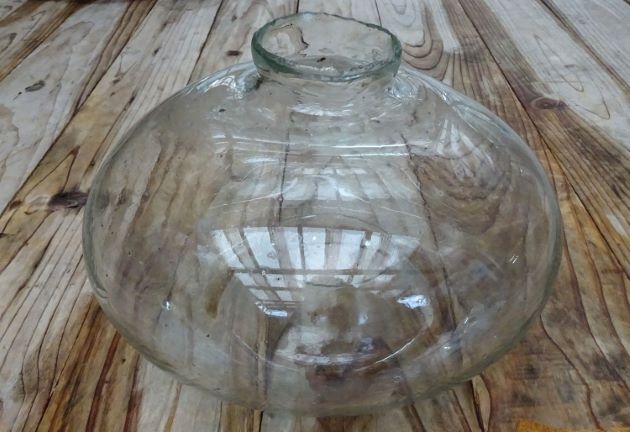 ハエ取り瓶 子供時代、徳島県貞光川では「ハエ取り瓶(蠅とりびん)」でとった。「ハエ取り瓶」は基本的にハエをとるための瓶だが、「ハエ=オイカワ」の可能性がある。上下に穴の開いた丸いガラス製品、この内側にさなぎ粉、味噌、ときに酒かす、小麦粉を合わせた寄せ餌を塗り、川底に石で固定した。これに「じゃこ」が入ってくるのだ。昭和30年代のものだと考えている。クリックで閉じます![]()