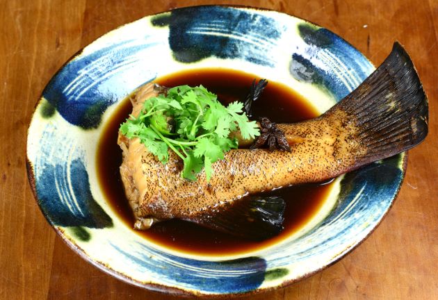 オオアオノメアラの中華風煮つけ 中国の甘い醤油と紹興酒、八角を使った煮つけだ。水洗いして適当に切る。湯通しして残った鱗やぬめりを流す。これを中華醤油・紹興酒・八角・水を煮立てた中で煮る。やや甘めながら本種の持ち味を引き出して、とても味わい深い一品になる。ご飯に合う。クリックで閉じます![]()
