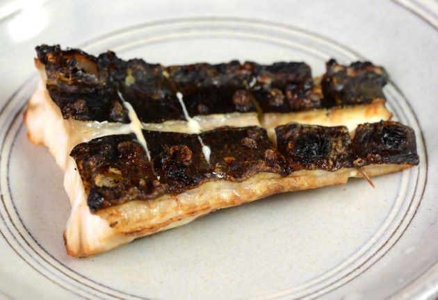 オオカミウオの塩焼き ていねいにぬめりをこそげ落として、水洗いする。三枚に下ろして、切り身にする。水分をよくきり、振り塩をして1時間以上寝かせて出て来た水分を再度取る。これをじっくり時間をかけて焼き上げる。皮をぱりっと焼き切るように焼くと、皮目が香ばしく中がしっとり上がる。クリックで閉じます![]()