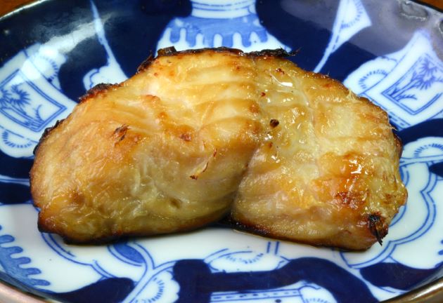 オオカミウオのつけ焼き(山椒焼き) 水洗いして三枚に下ろし、切り身にする。軽く振り塩をして水分が浮いてきたら拭き取っておく。これをじっくりと焼き上げる。焼き上がりに醤油・みりん・粉山椒を合わせたものを、数回にわたって塗る。時季なら生の山椒を使いたい。非常に上品で嫌みのない味に、しょうゆとみりんの味が相まってとてもいい味だ。クリックで閉じます![]()