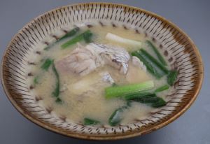 オオニベのみそ汁 あらを集めて置く。湯通しして冷水に落とす。残った鱗やヌメリを流して、水分をよくきる。水から煮出してみそを溶く。口に含むとあっさりとした中にうま味が感じられる。あらと一緒に食べて満足度が高い。クリックで閉じます![]()