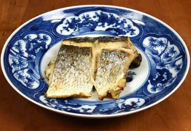 オオニベの塩焼き 単に塩焼きにしても美味。水洗いして二枚に下ろして骨つきの方を切り身にする。振り塩をして1時間以上寝かせて焼き上げる。不思議なことに、焼いて熱々のものよりも冷めて少し置いたものの方が味がいい。クリックで閉じます![]()