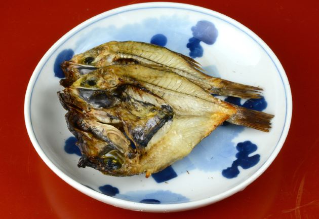 オオメハタの開き干し 小型の魚なので、たくさん手に入れたら干物にして置くといい。ここでは開いて干したが、丸干しにしてもいい。立て塩にして水分をよくきり、半日ほど干し上げたもの。手づかみで食べて欲しい。クリックで閉じます![]()