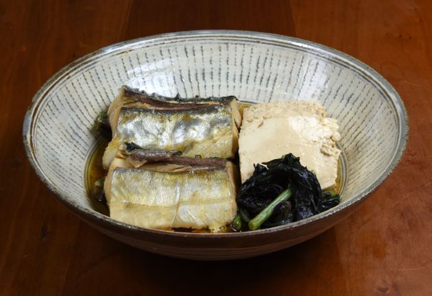 オキザヨリの酒塩煮 大型を使うといい。二枚に下ろして骨つきの方を切り身にして湯通しする。冷水に落として残った鱗やぬめりを流す。これを酒、塩の味つけで煮たもの。味つけはこってりでもいい。煮ても身は硬くならず、適度にほぐれやすい。小骨などもなくとてもうまい。クリックで閉じますオキザヨリの酒塩煮