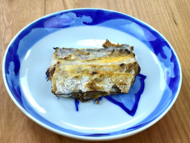 オキナワオオタチの塩焼き タチウオ類の定番料理だ。水洗いして適当に切り、振り塩をする。これをじっくり焼き上げる。皮目の風味が抜群にいい。身は柔らかくほどよい呈味成分からくる甘味が感じられる。クリックで閉じます![]()