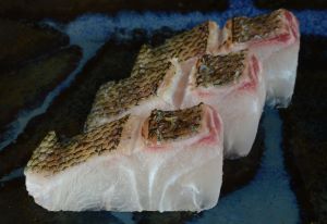オシャレコショウダイの塩焼き 見た目は大いに違うが、イサキ同様に焼くと皮目に独特の風味がある。切り身にして振り塩、少し寝かせてからじっくりと焼き上げる。焼いているそばからいい匂いがして、適度にしまった身にうま味がある。クリックで閉じます![]()