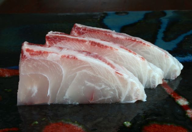 血合いの赤い白身で脂は皮下と筋肉に混ざる込む。熱を通しても硬く締まらない。栄養