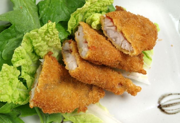 オジサンのフライ 水洗いして三枚に下ろす。腹骨と血合い骨を取る。皮を引かないで水分をよくペーパータオルで吸い取り、塩コショウする。小麦粉をまぶし、衣(水・卵・小麦粉)をからめ、パン粉をつけて揚げる。皮周辺に独特の甘みがあり、身はふっくらと豊潤でおいしい。お弁当のおかずにもなる。クリックで閉じます![]()