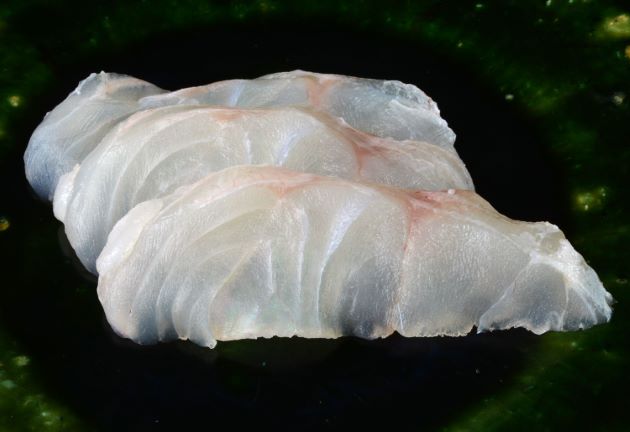 オジロバラハタの刺身 ハタ類の中でも身質のよさはトップクラスである。水洗いして三枚に下ろし、腹骨・血合い骨を取る。皮を引き、薄く切りつける。鮮度がよいと硬く感じるくらいである。身に甘味があり、とても味わい深い。食べ飽きないおいしさがある。クリックで閉じます![]()