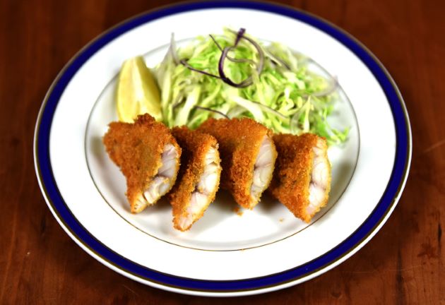 オニソコホウボウのフライ 三枚に下ろしすと、小骨も少なくきれいな白身が出てくる。これに塩コショウして小麦粉をまぶしてバッター液(小麦粉、卵黄、水)、もしくは溶き卵をくぐらせて、パン粉をまぶして揚げる。カサゴ亜目なのに身は締まりすぎず、ジューシーで柔らかい。非常に美味。クリックで閉じます![]()