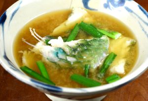 オニハゲブダイのみそ汁 あらを集めて置く、湯通しして冷水に落として残った鱗やぬめりを流す。水分をよくきり、水から煮出してみそを溶く。豊かなうま味とあらのおいしさ、ややみそを濃い目にするとご飯にもよくあう。魚汁(みそ汁)が沖縄で主菜なのがわかる気がする一ぱいである。クリックで閉じます![]()