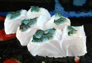 オニハゲブダイの皮霜造 ブダイ類は皮が命といったいいだろう。味は皮にあり、なのだ。水洗いして三枚に下ろし血合い骨・腹骨を取る。まな板などに皮目を上にして置き、布巾をのせて湯をかける。氷水に落として粗熱を取る。水分をよくきり、刺身状に切る。皮にうま味、身に甘味がある。クリックで閉じます![]()