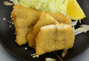 オニヒゲのフライ クセがなく脂が身に混在しているのを、揚げると身はジューシーで柔らかく、非常にフライ材料として優れている。三枚に下ろして、腹骨・血合い骨を取る。皮を引き、塩コショウして小麦粉をまぶし、溶き卵をくぐらせてパン粉をつけて揚げる。フライとして絶品。言うことなしの味だ。比較的まとまってとれる魚なので、産地でフィレ加工にしてもいいと思う。クリックで閉じます![]()
