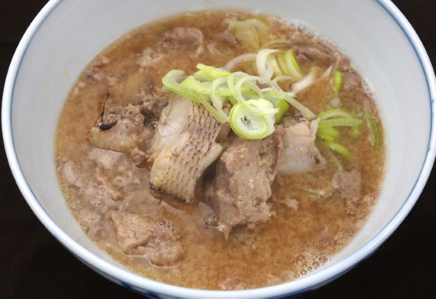 オニヒゲのみそ汁 肝をたっぷり入れたみそ汁は、同属のトウジンとともに魚類中最上級の味。水洗いして適当に切る。肝は取り分けて置く。刺身やフライにしたときのあらを使ってもいい。湯通しして冷水に落としてヌメリや残った鱗などを流す。水分をよくきり、水から煮出してみそを溶く。