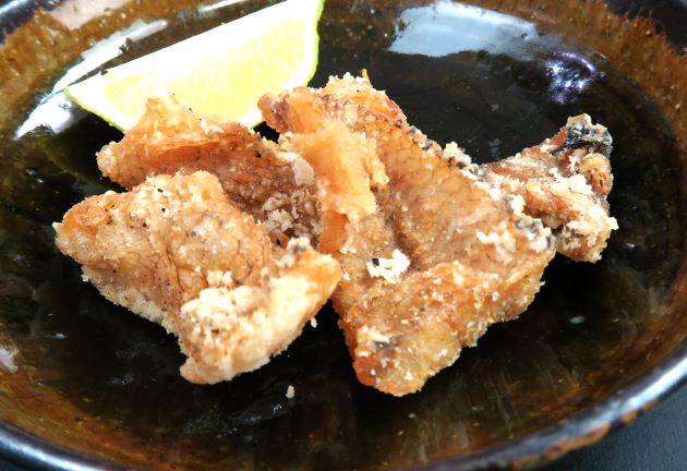 オニヒゲの唐揚げ オニヒゲを水洗いして尾に近い部分を使う。皮付きのまま適宜に切る。水分をよくきり、片栗粉をまぶしてじっくりと二度揚げにする。皮はやや硬いが揚げることで香ばしく揚がる。身はさくっとして甘味が感じられて美味。クリックで閉じます![]()